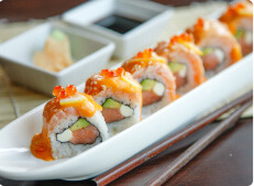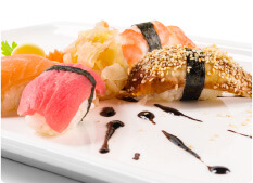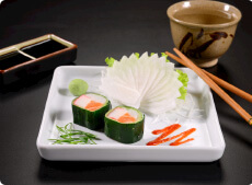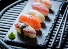 三文鱼军舰寿司、飞鱼籽军舰寿司等;