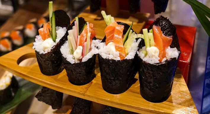 蟹子加州卷寿司、双色鱼籽手卷等;