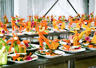 常见味型和烹调技法等训练; 常用冷菜冷拼制作技术; 食品雕刻技术; 中西点及酒店常用品种制作; 分档取料和简单火锅制作。
